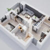 Locuința este amplasată la parterul unui imobil modern cu șase niveluri, dotat cu lift, având orientare însorită și o suprafață utilă de 54,61 mp, la care se adaugă un balcon generos de 5,90 mp. Compartimentarea este următoarea: