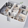 Locuința este amplasată la etajul 2 al unui imobil modern cu șase niveluri, dotat cu lift, având orientare însorită și o suprafață utilă de 51.56 mp, la care se adaugă un balcon generos de 8.90 mp. Compartimentarea este următoarea: