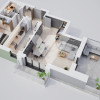 Locuința este amplasată la etajul 4 al unui imobil modern cu șase niveluri, dotat cu lift, având orientare însorită și o suprafață utilă de 60.39 mp, la care se adaugă două balcoane generoase de 3.80 mp, respectiv 14.60. Compartimentarea este următoarea: