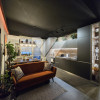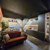 Baia impresionează prin designul elegant, cu lavoar freestanding tip coloană, finisaje premium și zonă tehnică integrată cu mașină de spălat și uscător AEG.