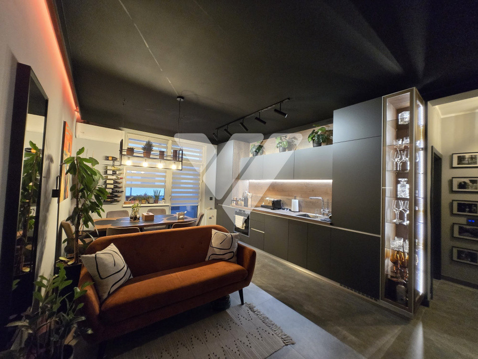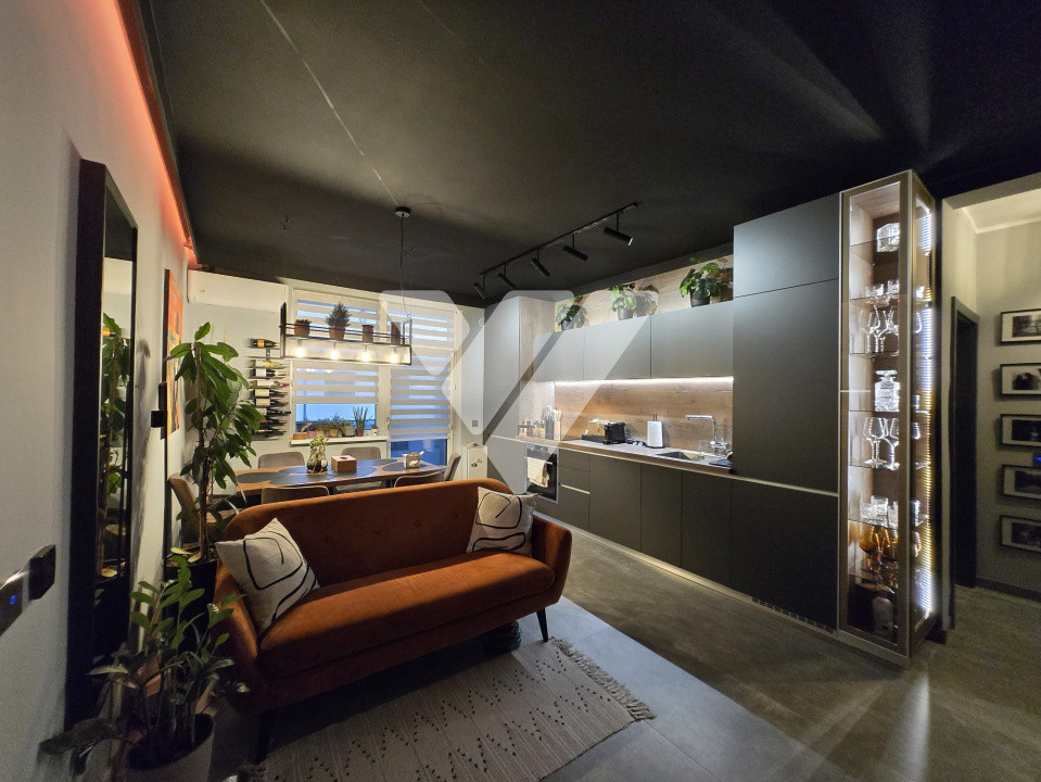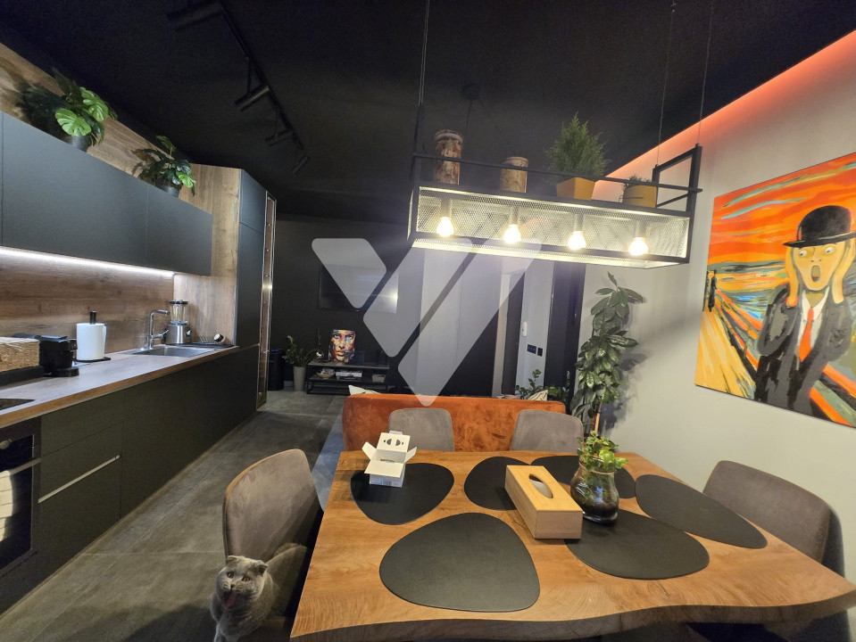 Apartamentul se vinde complet mobilat și utilat, cu mobilier realizat la comandă pentru fiecare încăpere – bucătărie, living, dormitoare și baie – folosindu-se materiale și finisaje de înaltă calitate.