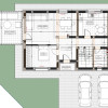 - Interior la gri avansat – pereți tencuiți, gletuiți, amorsă; pardoseli cu șapă mecanizată; instalații electrice și sanitare complete (fără obiecte sanitare); centrală termică Ariston 24 kW; încălzire în pardoseală Uponor; tâmplărie PVC cu 3 foi de sticlă; ușă la intrare montată.