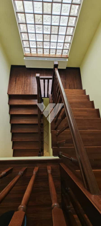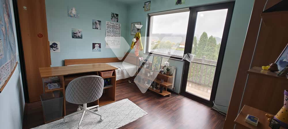 La primul nivel casa dispune de un living spațios, prevăzul cu zonă de dining, bucătărie separată, cu acces spre terasă, o cameră/birou și baie. Scara interioară din lemn masiv favorizează accesul spre cel de-al doilea nivel, acolo unde casa este prevăzută cu 4 dormitoare, o baie cu cadă și un spațiu de depozitare cu acces la pod. Casa vine cu mobila din lemn masiv, mai puțin în două dintre dormitoare.